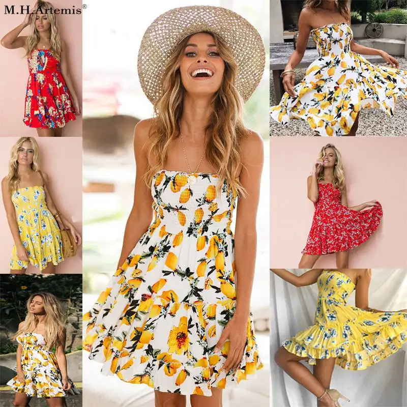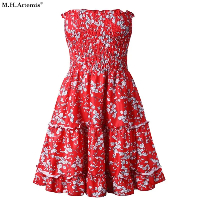 Bandage mini dress Summer Party Chiffon Floral print strapless short dress women Sleeveless 2018 style party dress vestidos