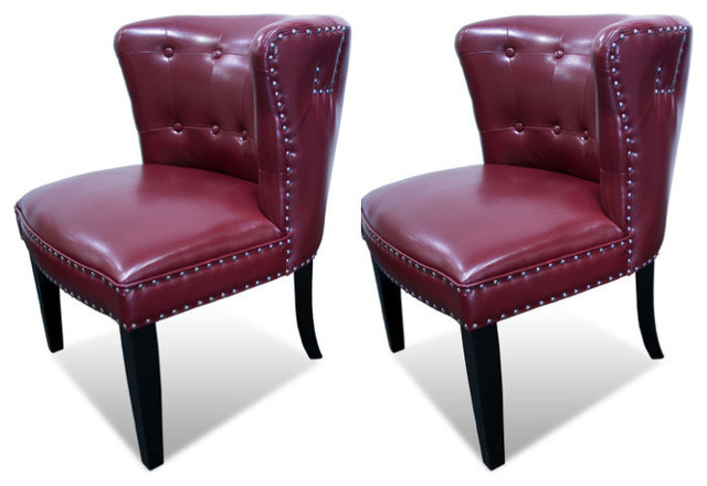 Regal Tufted Accent Chair With Nail Heads Set Of 2 Transitional (Regal Tufted Accent Chair With Nail Heads, Set of 2, Burgundy)