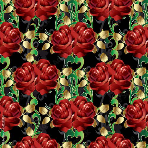 Foral Pattern Wallpaper Or Textile Red Roses Isolated On Black